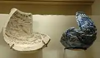 Лише незначна кількість керамічних центрів набула такого рівня розвитку, що звернулась до створення фігурного посуду у вигляді тварин. Декілька центрів середньовічної Персії досягли саме такого рівня і почали виробляти керамічних птахів і тварин, серед котрих соколи, коні, верблюди. Серед цих виробів знайдені і фігурки, що позбавлені функцій посуду, бо вини мали самостійне скульптурне значення[7].