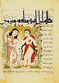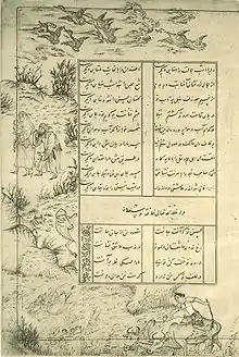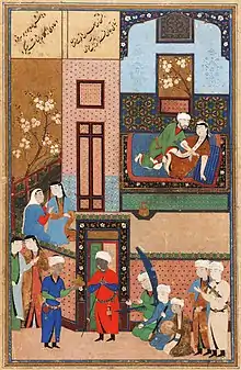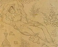 Тематика живопису до певної міри була обумовлена перською образотворчою традицією попередніх століть. Це стосується в першу чергу настільки улюблених в Ірані в усі часи зображень мисливських сцен, які відомі з часів Ахеменідів. Приклади доісламського іранського живопису, які дійшли до наших днів, дуже рідкісні. В основному це твори створені на східних окраїнах перського світу — рідкісний живопис по дереву, і стінні розписи з Пенджікента. Найраніша перська ілюстрована книга — астрономічний трактат Абд ар-Рахмана ас-Суфі, переписаний в 1009-10 роках (Бодлеянська бібліотека, Оксфорд), проте його ілюстрації, що зображують сузір'я, мають пояснювальне значення і є скоріше підсвіченими малюнками, ніж мініатюрами.