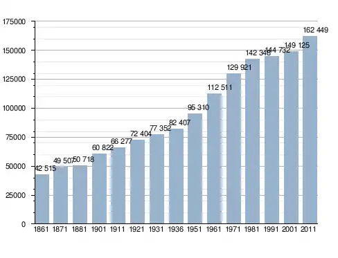 Станом на 31 грудня 2014 року в муніципалітеті офіційно проживали 20 643 іноземці з 136 країн, серед них 5028 громадян країн Євросоюзу та 1139 громадян України.[4]