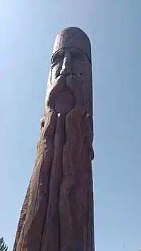 ![]() Ідол Перуна, встановлений на базі полку «Азов», с.Юріївка, Донецька обл. | |