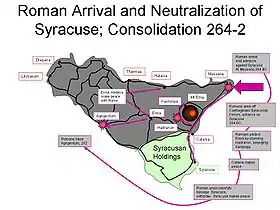 Проте, коли вже вся Південна Італія опинилася в руках Риму (272 до н. е.),[1] політика щодо Карфагену змінилася: народні збори виступили з вимогою розширити вплив Римської держави на морі і для цього необхідно було закріпитися на Сицилії. Карфаген продовжував нарощувати свій вплив та здобувати нові завоювання на острові, а Рим не хотів погодитися з тим, щоб вся Сицилія у перспективі потрапила під контроль фінікійців. Римський історик Луцій Анней Флор писав: