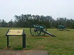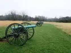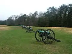 Федеральна артилерія поступалася за чисельністю конфедеративній, але мала перевагу по далекобійності: 51 % федеральних гармат були нарізними проти 18 % в арміях Півдня. Хоча північні могли вести вогонь в основному 3-дюймовими снарядами, їх артилерія била на 1500—2000 метрів, в той час як 6-фунтові гармати південних — тільки на 1000 метрів. Таким чином, федеральна армія мала перевагу, поки вела дуель на великих дистанціях, але на коротких конфедерати отримували перевагу через більший калібр[16].
