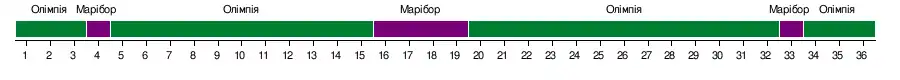 | Марибор | 1-0 | 1-0 | 0-0 | 0-0 | 2-1 | 3-2 | –––– | 1-0 | 1-0 | 0-0 |