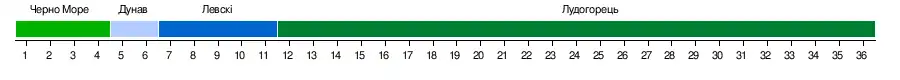 | Лудогорець | 1:0 | 4:1 | 2:2 | 2:1 | 4:0 | 1:0 | 2:0 | 3:1 | 3:0 | 3:1 | 1:1 | 4:0 | 2:1 | |