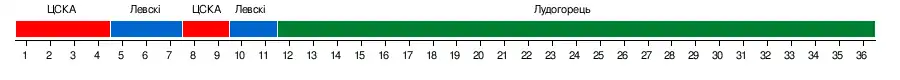 | ЦСКА (Софія) | 2-0 | 2-1 | 2-1 | 3-1 | –––– | 3-0 | 0-1 | 2-0 | 1-1 | 5-1 | 3-0 | 2-1 | 4-0 | 3-0 |