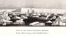 «… признаковъ большой южной земли нигдѣ имъ не встрѣчено, хотя плаваніе его происходило по большей части за полярнымъ кругомъ, если же таковая земля и существуетъ, то должна быть во льдахъ, покрыта ими и опознать оной нѣтъ возможности»[7]