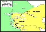 Індійські сили припинили переслідування племінних сил після повторного захоплення Урі й Барамули й виділили колону для розблокування кашмірських військ у Пунчі. Хоча загін зрештою досягнув Пунча, блокаду зняти не вдалося. Друга колона індійських військ досягнула Котлі та зайняла місто, але незабаром була змушена залишити його, не маючи можливостей для його втримання. Тим часом Мірпур був захоплений мусульманським ополченням 25 листопада 1947 року.[5].
