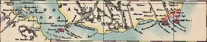 Перім та Аден на карті 1899 року (пофарбовані у рожевий колір).