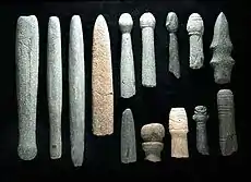 - Свідченням потужності луку джьомонівців є знахідка зі стоянки Шіджімідзука (Хамамацу) — лопатка кабана, пробита кам'яним вістрям. (Період Дзьомон // Енциклопедія Ніппоніка: в 26 т. 2-е видання. — Токіо: Шьоґаккан, 1994—1997.)