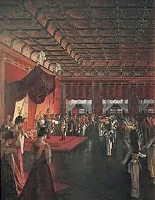 Конституція Великої Японської імперії була прийнята 29 листопада 1890 року[3]. Це була форма змішаної конституційної та абсолютної монархії[4]. Імператор Японії юридично був верховним лідером, а Кабінет Міністрів — його послідовниками. Прем'єр-міністра обирала Таємна рада. Насправді главою держави залишався імператор, а прем'єр-міністр був фактичним главою уряду.