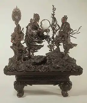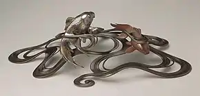 На початку ери Мейдзі японські металоконструкції були майже абсолютно невідомими за межами країни, на відміну від лаку та фарфору, які й раніше експортувались. Вироби з металу були пов’язані із буддистською практикою, наприклад, при використанні бронзи для храмових дзвонів та кадильних казанів, тож металістів стало менше, коли буддизм був витіснений як державна релігія. Міжнародні виставки принесли японській литій бронзі нову законрдонну аудиторію, привернувши потужне визнання. Сузукі Чокічі, провідний виробник литої бронзи для міжнародної виставки, став директором «Kiritsu Kosho Kaisha» з 1874 року до розпуску компанії у 1891 році. У 1896 році він був призначений художником Імператорського двору. Джерелами натхнення Чокічі та його сучасники черпали з різьблення та гравюр пізнього періоду Едо, поєднуючи та інколи перебільшуючи традиційні елементи дизайну по-новому, для привернення уваги експортного ринку. Минула історія самурайської зброї оснащувала японських майстрів з металу для створення металевих обробок у широкому діапазоні кольорів. Поєднуючи та обробляючи мідь, срібло та золото у різних пропорціях, вони створили спеціалізовані сплави, включаючи сакудзо та сібуіті. Завдяки цій різноманітності сплавів та обробки художник міг створити враження повнокольорового оздоблення[5].