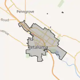 ![]() ![]() ![]() ![]() ![]() Clockwise: St. Vincent de Paul Church; Petaluma Historic Commercial District; U.S. Post Office; Petaluma Public Library; Rancho Petaluma.