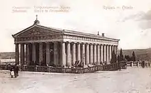 Храм є взірцем дорійського стилю. Він оточений колонадою (усього 44 колони) з канелюрами. Матеріалом слугував сарматський вапняк. У будові є риси афінських храмів Парфенона або Тезейона, проте оригінальний проект базувався лише на загальних класичних формах та елементах.