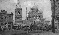 Після освячення в 1899 році кам'яної будівлі Петропавлівської церкви, дерев'яну церкву перенесли на Сінну площу, де її обклали цеглою зовні.