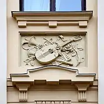 - ліплення на фасаді кам'яниці на вулиці Степана Руданського № 5 (1902; архітектор Ян Шульц);