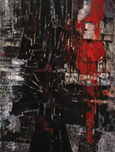 У 1950-х роках серед художників і скульпторів Франції популярним був абстракціонізм. У Парижі представники цього напрямку мистецтва відносилися до третього періоду Паризької школи, лідером якої був Жан Базен (Jean Bazaine). Їх підтримували два мистецтвознавці: Бернар Доріваль (Bernard Dorival) і П'єр Франкастель (Pierre Francastel). Дмитрієнко зблизився з митцями цієї школи, виставляв свої твори в «галереї Маг» (Maeght). У деяких своїх творах він вносить почуття священного, можливо з православ'я. Пізніше, він називав ці картини — іконами.