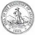 У 1863 році президент Лінкольн підписав указ про призначення в території Аризона тимчасового уряду. Губернатором території був призначений Річард Мак-Кормік. Їм і була розроблена перша печатка Аризони. У центрі неї був зображений гірник, що стоїть перед тачкою, що тримає кайло і невелику лопату. На задньому фоні були зображені дві гори. Внизу друку був поміщений девіз Ditat Deus і 1863, рік заснування території. Перший дизайн зазнав критики, у відповідь на яку Мак-Кормік розробив нову печатку. На ній крім старих елементів був зображений слабкий струмок біля ніг гірника. Тачка і коротка лопата були замінені на довгу лопату, а дві гори замінені на одну.