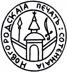 Напис по колу: ПЕЧАТЬ : СОТЕННАІА НОВГОРОДСКАІА