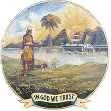 Перша версія дизайну державної печатки штату з'явилася 1861 року й на передньому плані містила зображення жіночого символу свободи з бочками і дерев'яними ящиками біля її ніг. На другому плані намальовано мапу Флориди і човни, що плавають в Мексиканській затоці.