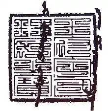 - Байвен друкує фон червоним кольором, залишаючи білі символи, які іноді називають печатками інь.