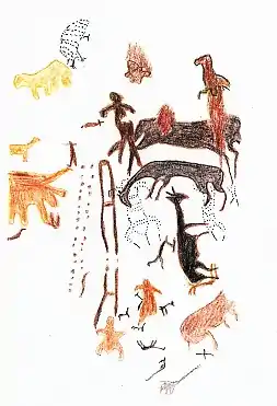 Замальовка одного з настінних малюнків у печері Токепала