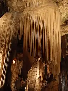 Утворення формуються на стелі печери і, спускаючись, простягаються аж до підлоги, утворюючи таким чином немов завісу[2].