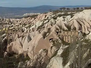 Вирубані в скелях наземні оселі використовувалися як світським населенням, так і ченцями. Але саме християнські подвижники залишили самі чудові пам'ятники, перетворивши на монастирі цілі гірські долини.