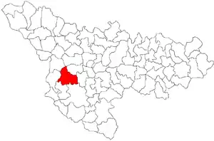 Комуна розташована на відстані[3] 416 км на захід від Бухареста, 21 км на південний захід від Тімішоари.