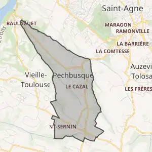 Муніципалітет розташований на відстані[2] близько 600 км на південь від Парижа, 9 км на південь від Тулузи.