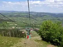 Крісельний витяг на гору Гемба (с. Пилипець) навесні