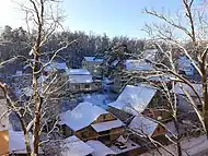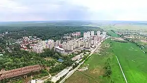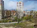 | ЖК «Rich Town» | Західна, 2-12 | З 2014 року ТОВ «Сарафан» розпочало будівництво на ділянці, вільній від лісу. Забудовник вчасно не виконав свої обов'язки. Сім будинків (понад 800 квартир) ввели в експлуатацію без нормального забезпечення газом й електрикою. За станом на 2018 рік у десятиповерхових будинках не працювали ліфти. Оскільки будинки отримують електроенергію від тимчасової трансформаторної підстанції, електромережі не витримують навантаження[47][48] У березні 2018 року ПрАТ «Київобленерго» на деякий час припинило постачання електроенергії[49]. | ![]() |