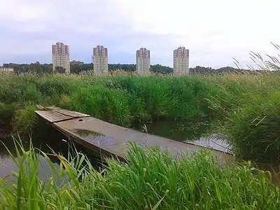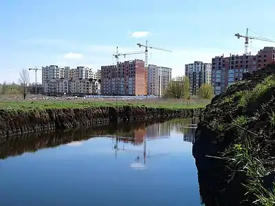 Частина житлових комплексів стоїть у колишній заболоченій місцевості. По майбутній території ЖК «Академквартал», «Синергія-2» і «Rich Town» протікав струмок, який, щоправда, сховали в колектор.