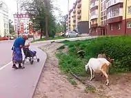 | Приватний сектор на вул. Новооскольській | 90-річна Елеонора Савчук із козами Чайкою й Даною (2016)[9] |