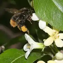 На квітах бджола зіскрібає пилок щелепами і зволожує його слиною. Пилкові зерна прилипають до волосків голови й грудей. Цьому сприяє шерехата поверхня пилкових зерен і розгалуженість частини волосків.
