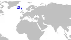 Мешкає від узбережжя Ісландії, Фарерських островів до Гебридських островів та узбережжя Шотландії й Ірландії. Також інколи зустрічається біля берегів Франції у Біскайській затоці, Західної Сахари.