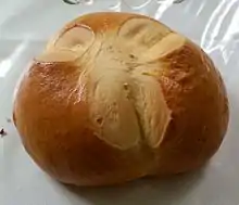 Це солодкий хлібний коровай із знаком хреста, який вирізають ножем перед випіканням, на верхній стороні.