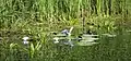 Значні площі на території парку зайняті угрупованнями водної рослинності. Найнижчі ділянки рельєфу репрезентують угруповання водних і прибережно-водних рослин. Вони поширені в межах сучасних заплав. Найпоширенішими є ценози очерету звичайного, як сильно обводнені, так і болотного типу. Досить поширені угруповання з домінуванням рогозу широколистого, лепешняку великого, куги озерної. На плесах водойм поширені угруповання рдесників гребінчастого, блискучого, плаваючого, злаколистого, кучерявого, пронизанолистого, водопериці колосистої, жабурника звичайного.