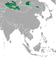 Країни проживання: Китай (Хейлунцзян, Синьцзян), Казахстан, Монголія, Російська Федерація (Алтайський край, Амурська, Бурятія, Чита, Іркутськ, Красноярськ, Тува). Живе на висоті 400–2500 м. Надає перевагу кам'янистим гірським районам і деревам вздовж гравійних областей, як середовище проживання.