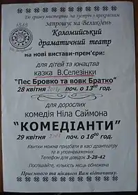 У Коломийському академічному обласному драматичному театрі(м.Коломия) поставлено дві його п'єси для дітей: «Пес Бровко та вовк Братко», «Дармоїди». Третя, «Вітрова донька», і п'єса для дорослих «Дон Жуан з Коломиї» чекають черги.