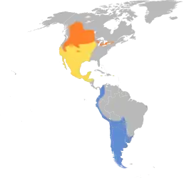 Гніздиться у преріях Північної Америки, передусім, у західній Канаді і США. Вид відноситься до перелітних птахів і зимує в Південній Америці. Іноді птахи цього виду під час перельоту залітають також в Європу.