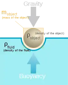 При цьому сила виштовхування (Buoyancy), залежить від густини рідини (ρfluid), а вага (Gravity) від густини тіла (ρobject). Обидві сили є рівнодійними розподілених навантажень. Зрозуміло, що чим більша густина рідини, тим менша частина тіла зануриться до рівноваги. Навпаки, чим більша густина тіла при заданому об'ємі, тим більша його маса m, і тим глибше воно зануриться.