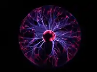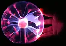 Плазмова лампа — декоративний прилад, що складається зазвичай зі скляної сфери із встановленим усередині електродом. На електрод подається змінна висока напруга з частотою близько 30 кГц. Усередині сфери створюють розрідження (для зменшення напруги пробою) і закачують суміш газів (для додання «блискавок» визначеного кольору). Теоретично, термін служби у плазмових ламп може бути досить тривалим, оскільки це малопотужний освітлювальний пристрій, що не містить ниток розжарювання і не нагрівається в процесі своєї роботи. Типова споживана потужність 5-10 Вт.