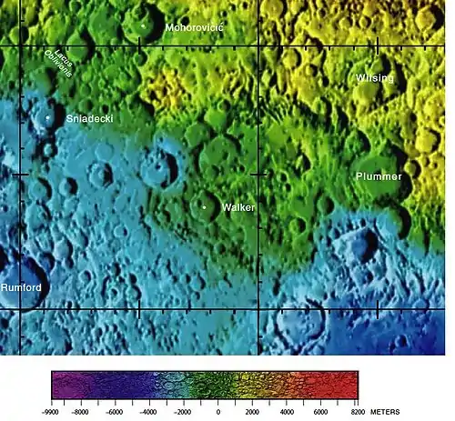 - Утворення сателітного кратера Пламмер N відносять до нектарского періоду[1].