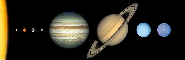 Сьогодні у Сонячній системі відомо 8 планет: Меркурій, Венера, Земля, Марс, Юпітер, Сатурн, Уран, Нептун. У 2006 р. 26 Генеральна асамблея Міжнародного астрономічного союзу скасувала статус планети для Плутона. Планети земної групи — Меркурій, Венера, Земля, Марс — близькі за розмірами і будовою, середня густина їх речовини становить 5,52-3,97 г/см3. До цієї групи примикають деякі великі супутники планет, які схожі за своїми характеристиками до планет земної групи. Це супутники Юпітера Ганімед, Іо, Європа, Каллісто і супутник Сатурна — Титан.