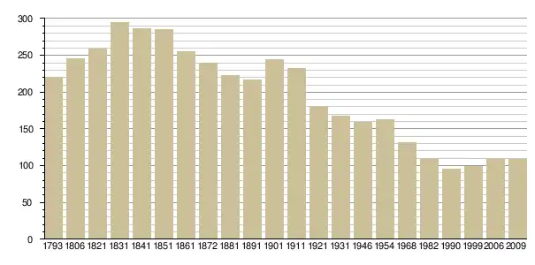 Динаміка населення (base Cassini de l'EHESS pour les nombres retenus jusque 1962[3], base Insee à partir de 1968 (population sans doubles comptes puis population municipale à partir de 2006)[4] · [5] ):
