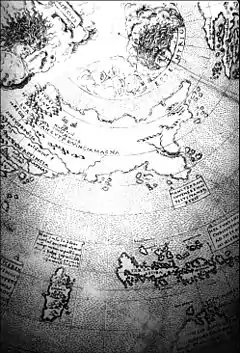 На карті також є Куба і Іспаньола; Куба відокремлена від Сіпанго (назва, дана Японії Марко Поло) вузькою морською протокою, а Японія (Сіпанго), у свою чергу, відокремлена від Катаю. Напис поряд з Сіпанго вказує: «Цей острів знаходиться за 1500 миль на схід від узбережжя Магри. На нім є багато золота, але його не так просто здобути. Там живуть ідолопоклонники» — ймовірно, автор посилається на інформацію, надану Марко Поло.