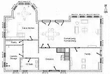 План будинку — це розріз горизонтальною площиною на рівні, трохи вищому від підвіконня. Для багатоповерхового будинку плани виконують для кожного поверху.