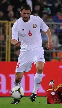 У національній збірній Білорусі провів свій перший виступ 15 листопада 2006 року в товариському матчі зі збірною Естонії в Талліні (1: 2). Забив свій єдиний м'яч за збірну 2 лютого 2008 року на XVI міжнародному турнірі національних збірних на Мальті в товариському матчі зі збірною Ісландії (2:0).