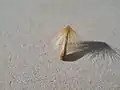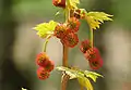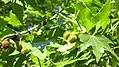 Листя — 10–20 см завширшки, переважно в основі ширококлинодібне, з глибокими лопатями, що у 5–7 разів довші за свою ширину, голе (без запушення).