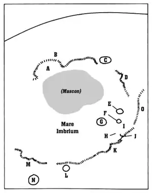 Кратер повністю заповнений базальтової лавою, центральний пік і значні кратери в його чаші відсутні. Дно чаші кратера приблизно на 500 м вище рівня Море Дощів. Чаша кратера має порівняно низький альбедо, тому на тлі навколишньої місцевості кратер виглядає добре помітним темною плямою. У XVII столітті польський астроном Ян Гевелій називав кратер « Велике Чорне озеро». Вал кратера нерегулярний, з високими зубчастими піками, що відкидають помітні тіні при знаходженні сонця під низьким кутом. Найбільше піднесення мають пік Дзета ζ (2900 м) в західній частині валу і піки Гамма γ (3200 м), Дельта δ (2600 м), Епсилон ε (1900 м) в східній частині вала [5]. Слід зазначити, що достовірних даних про підвищеннях піків немає, інші джерела наводять інші дані. Ділянки внутрішнього схилу зазнали значного обвалення, особливо велику ділянку трикутної форми в західній частині - плато Дзета довжиною 15 км, відокремлене від валу каньйоном. У південно-західній частині від зовнішнього валу відходить прикметна долина. Кратер має правильну форму, проте при спостереженні із Землі здається еліптичності за рахунок перспективного спотворення.